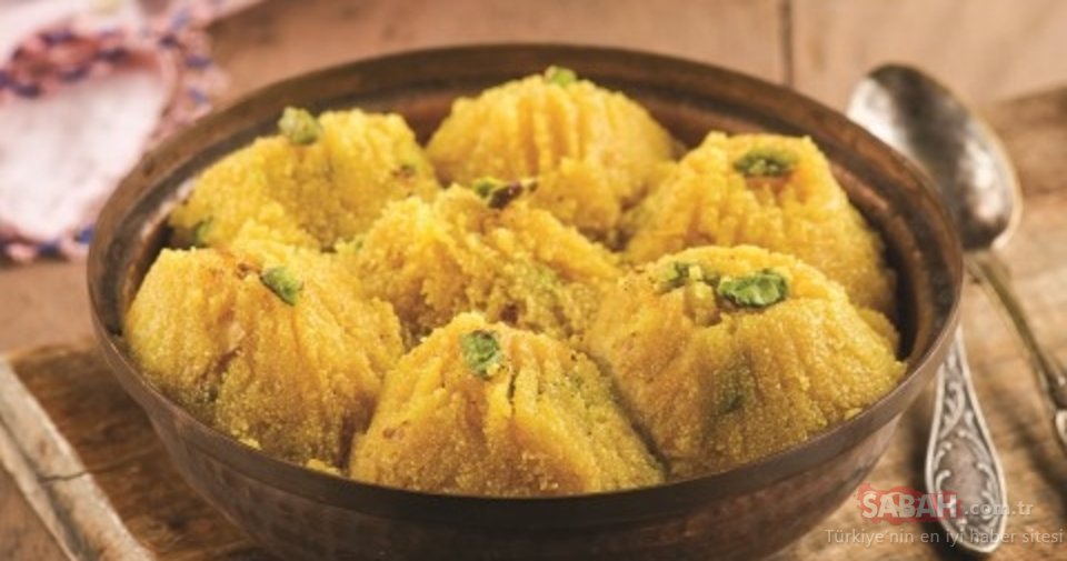 İrmik ve dolmalık fıstıkları ekleyip rengi değişene kadar sık sık karıştırarak kavurun. Kavrulan irmiğin içine zerdeçal, vanilya ve portakal kabuğu rendesini ekleyip karıştırın. Ilık olarak bekleyen sütlü şerbeti de ekleyip karıştırarak çektirin. Çektikten sonra ocaktan alıp 20-25 dakika demlenmeye bırakın. Antep fıstığı ile süsleyip servis yapın.