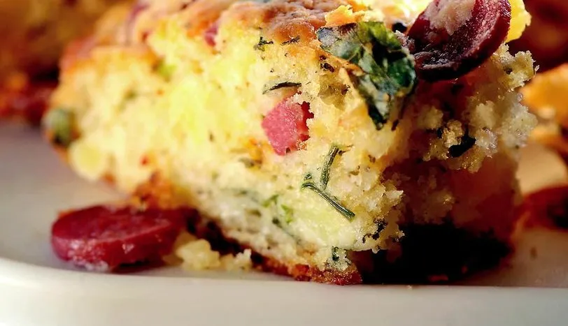 Derin bir kasede yumurtayı çırpın. Yoğurt ve sıvı yağı ekleyip karıştırın. Bu karışıma un ve kabartma tozu ekleyip tekrar karıştırın. Patatesleri haşlayıp küp şeklinde doğrayın. Hazırladığınız karışıma patates, rendelenmiş kaşar peyniri, halka doğranmış sosis, ince kıyılmış taze nane ve maydanoz, tuz, karabiber, pul biber ekleyip, karıştırın. Yağlı kağıt serilmiş fırın tepsisine hamuru rulo şeklinde yerleştirin. Önceden ısıtılmış 170 derece fırında üzeri kızarana kadar pişirin. Ilındıktan sonra dilimleyerek servis yapın.