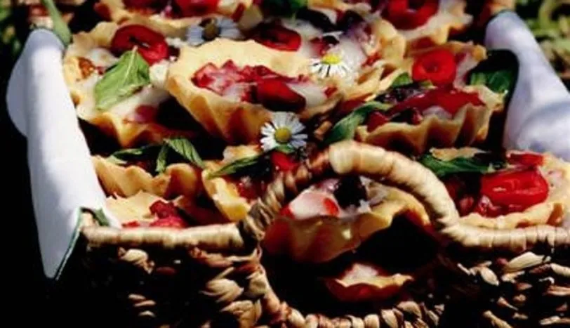 Kenara ayırdığınız hamurdan ceviz büyüklüğünde parçalar kopararak tart kalıplarının içine yerleştirin. Üst malzemesini hazırlamak için sosis, domates, tuz, küçük doğradığınız kırmızı biber ve çarliston biberi, karabiberi, toz şekeri tavada 2-3 dakika pişirin. Soğuduğunda tart hamurlarının içine yerleştirin. Üzerine rendelenmiş kaşar peynirini serpin. 180 derece fırında tart hamurları hafif pembeleşene dek pişirin