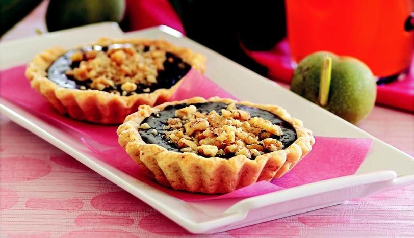 Tartölet için ceviz, un, tereyağı, toz şeker, su ve tuzu yoğurun. Ceviz iriliğinde parçalar koparıp, tartölet kalıplarına elinizle bastırarak pay edin. Önceden ısıtılmış 200 derece fırında hafif pembeleşene dek pişirin. Krema için ceviz, benmari usulü eritilmiş bitter çikolata ve kremayı karıştırın. Karışımı soğuk tartöletlerin içine pay edin. 2-3 dakika dinlendirip, kıyılmış cevizle süsleyerek servis yapın.