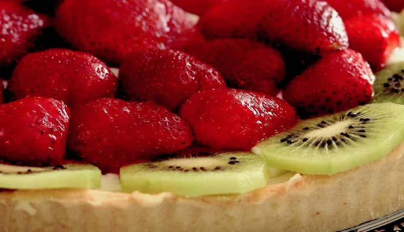 Öncelikle tart hamuru için, yağ, yoğurt, yumurta sarısı, pudra şekeri, vanilya, bir tutam tuz ve limon kabuğunu karıştırın. Karışıma yavaş yavaş un ekleyin. Hazırladığınız yumuşak hamuru, streç folyoya sarıp, buzdolabında 1 saat bekletin. 26 cm çapındaki tart kalıbını yağlayıp unlayın. Dinlenen hamuru merdane ile açın. Kenarlarını kaplayacak şekilde tart kalıbına yerleştirin. Üzerini çatal yardımı ile delip, toz şeker serpin. Önceden 20 dakika ısıtılmış 125 derece fırında 25 dakika pişirin. Bu sırada çilekleri ayıklayıp ikiye bölün. Kivileri soyup dilimleyin. Fırından aldığınız tartın üzerine, tarifine göre hazırladığınız pasta kremasını sürün ve meyveleri istediğiniz gibi dizin. Soğuk servis yapın.