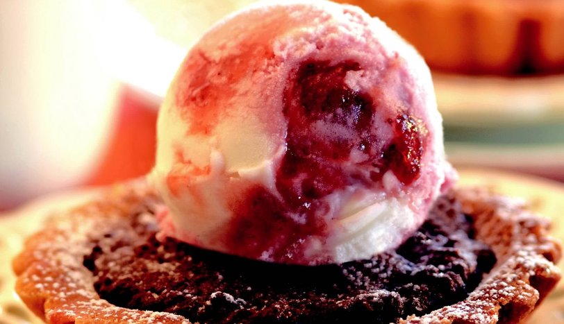 Fırından alıp soğumaya bırakın. Soğuduğunda kalıptan çıkarın. Çikolataları benmari usulü eritip, ufalanmış brownielerle karıştırın. Karışımı tartoletlerin ortalarına pay edin Ortalarına dondurma topları yerleştirip, servis yapın.
