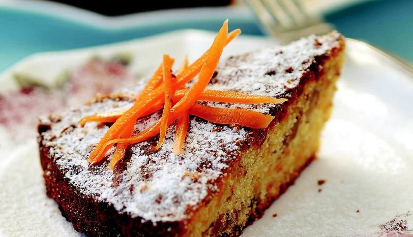 Tereyağı ve toz şekeri bir kaba alıp, mikserle iyice çırpın. Yumurtaları ekleyin ve çırpmaya devam edin. Rendelenmiş limon kabuğunu, nişasta ile karıştırılmış unu ekleyin ve harmanlayın. İnce rendelenmiş havuç, kıyılmış badem ve mayayı katın. Bütün malzemeyi iyice karıştırın. Daha sonra yağlanmış ve unlanmış 18 cm çapında bir kalıba boşaltın. Fırına koymadan önce oda sıcaklığında 10 dakika bekletin. Önceden ısıtılmış 170 derece fırında kontrol ederek pişirin (pişip pişmediğini anlamak için kuru bir bıçak batırın, bıçak kuru çıkıyorsa pişmiş demektir). Fırından alıp, turtayı tel bir ızgara üzerine çıkartın. Soğuduktan sonra servis tabağına alın. Üzerine pudra şekeri serpin ve havuç dilimleriyle süsleyip, servis yapın.