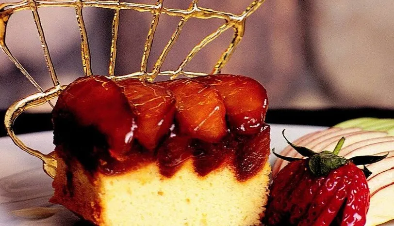 Öncelikle karamel sos için şeker, su ve limon suyunu küçük bir tencerede karıştırın. Şeker pembeleşinceye dek kaynatın. Tereyağını ilave edin. Elmaların kabuklarını soyun. İnce dilimleyin. Hazırladığınız sosta 5-6 dakika kaynatın. Bu arada kek malzemesini hazırlayın. Margarin, sıvıyağ ve şekeri krema gibi olana dek çırpın. Çırpma işlemine devam ederek, teker teker yumurtaları ekleyin. Sütü ilave edin. Son olarak kabartma tozunu, unu ve tarçını ekleyip, iyice karıştırın. Elma dilimlerini piştikten sonra süzün. Dikdörtgen şeklindeki altı çıkabilen bir kek kalıbının alt kısmına alüminyum folyo koyun. Elma dilimlerini kalıba dizin. Elma dilimlerini içinde pişirdiğiniz karamel sosu, elma dilimlerinin üzerine dökün. Kek hamurunu üzerine dökün. Önceden ısıtılmış 180 derece fırında 35-40 dakika pişirin. Bu arada vanilya sosunu hazırlayın. Bir kapta şeker ve yumurta sarısını iyice karıştırın. Yavaş yavaş sütü ekleyin. Küçük boy bir tencereye aktarın. Orta hararetli ateşte hafifçe koyulaşıncaya dek pişirin. Tencereyi ateşin üstünden indirerek, vanilyayı ilave edin. Sosu süzgeçten geçirin. Soğumaya bırakın. Pişen tartı fırından çıkarın. Hafifçe ılınana dek bekletin. Kalıbından ters çevirerek çıkarın (kek kısmı alta gelecek şekilde). Dilimleyip, servis tabağına alın. Vanilya sosla servis yapın.