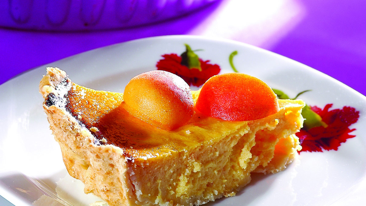 Un, toz şeker, limon kabuğu ve tuzu bir kabın içinde karıştırın. Margarini küp doğrayıp kaba alın. Soğuk suyu ekleyip yoğurun. Üzerini nemli bir bez ile örtüp buzdolabında 1 saat dinlendirin. Hamuru yağlanmış yuvarlak kalıbın içine, kenarlarını yükselterek yerleştirin. Diğer tarafta kayısıların çekirdeklerini çıkartıp robotta püre haline getirin. Püreyi, nişasta, yumurta, toz şeker, limon suyu ve peynirle karıştırıp çırpın. Hazırladığınız karışımı kalıptaki hamurun üzerine boşaltın. Kalıbın üzerini de folyo ile kapatın. Önceden ısıtılmış 200 derece fırında 25 dakika pişirin. Kalıbın üzerinden folyoyu çıkartıp 30 dakika daha pişirin. Soğuduktan sonra, kayısı dilimleriyle süsleyerek servis yapın.
