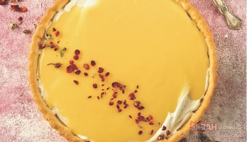 Hazırladığınız tart tabanını kalıptan çıkarıp servis tabağına alın. Üzerine önce kremayı, sonra sosu dökün. Kurutulmuş gül yapraklarıyla veya dilediğiniz malzemeyle süsleyerek servis yapın.