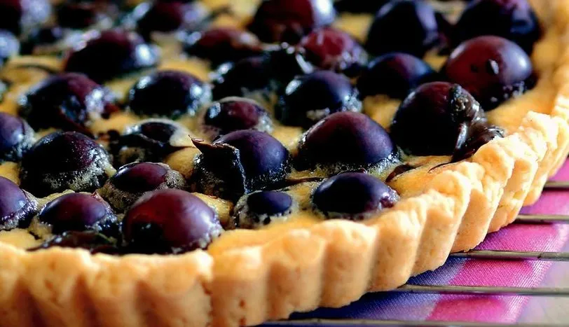 Un, tereyağı ve yumurtayı karıştırın. Üzerini örterek buzdolabında 30 dakika dinlendirin. Buzdolabından çıkardığınızda merdane ile açın. Tart kalıbını yağlayıp, hamuru kalıba yerleştirin. Çatal yardımıyla tabanında delikler açın. Önceden ısıtılmış 180 derece fırında pembeleşene kadar pişirip, ılınmaya bırakın. Üzüm, lor peyniri, 1 çorba kaşığı toz şeker, krema, rendelenmiş limon kabuğu, vanilya ve yumurtayı çırpın. Karışımı tart hamurunun üzerine yayın. Önceden ısıtılmış 200 derece fırında hafif kızarana dek pişirin. Dilimleyerek servis yapın.