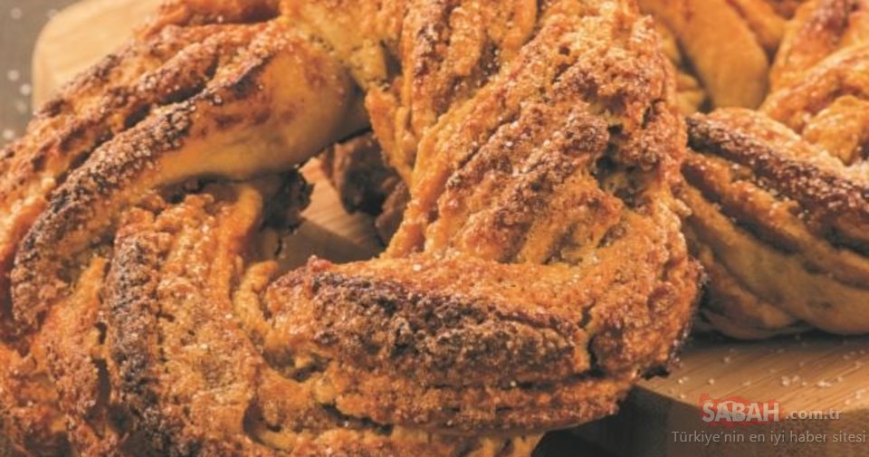 İç malzeme için tüm malzemeyi karıştırın. 4 parçaya bölüp hamurların üzerlerini kaplayacak şekilde yayın. 1 adet hamuru rulo yapıp, uç kısmından bir parmak pay bırakıp boydan boya kesin. İki ucun iç kısımları dışa gelecek şekilde dolayıp, uçlarını birleştirin. Kalan hamurları da aynı şekilde hazırlayın.