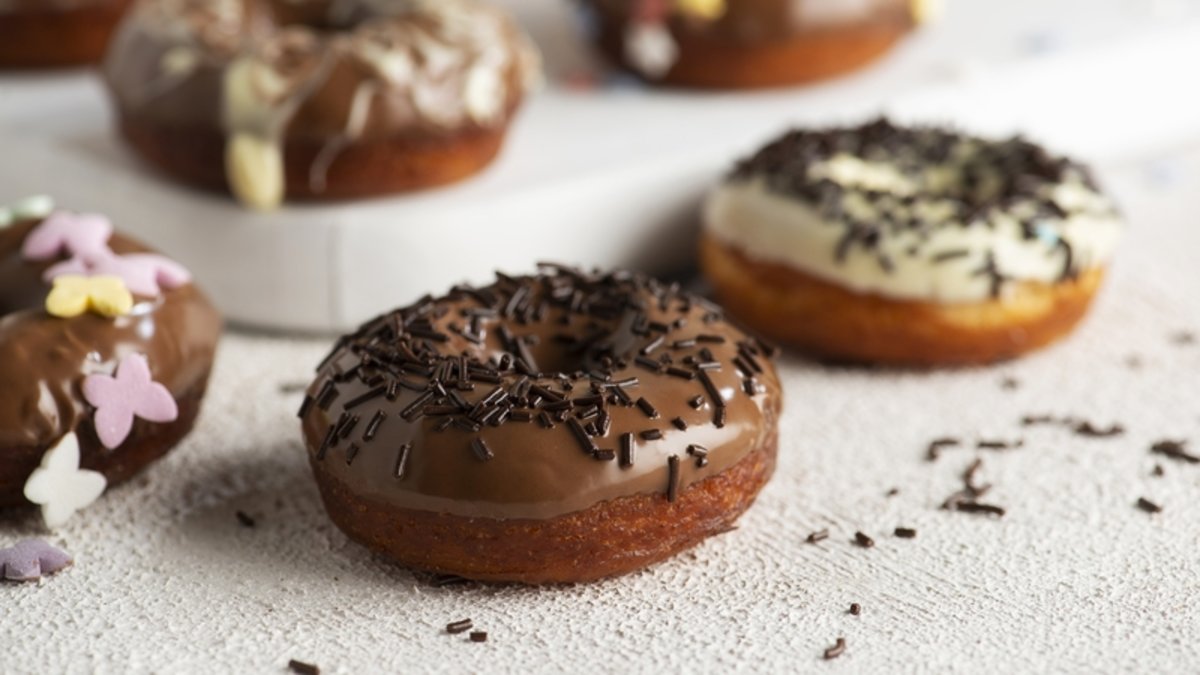Soğuyan donutları önce benmari usulü eritilen çikolataya sonra renkli şekerlemelere bulayarak süsleyin ve servis yapın.