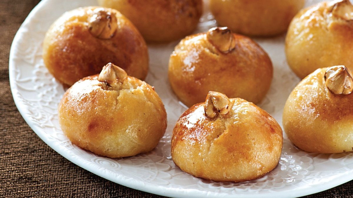 Ortalarına 1'er adet fındık yerleştirip, önceden ısıtılmış 170 derece fırında pembeleşene dek pişirin. Fırından alıp, üzerine soğuk şerbeti gezdirin. Şerbeti çekince servis yapın.