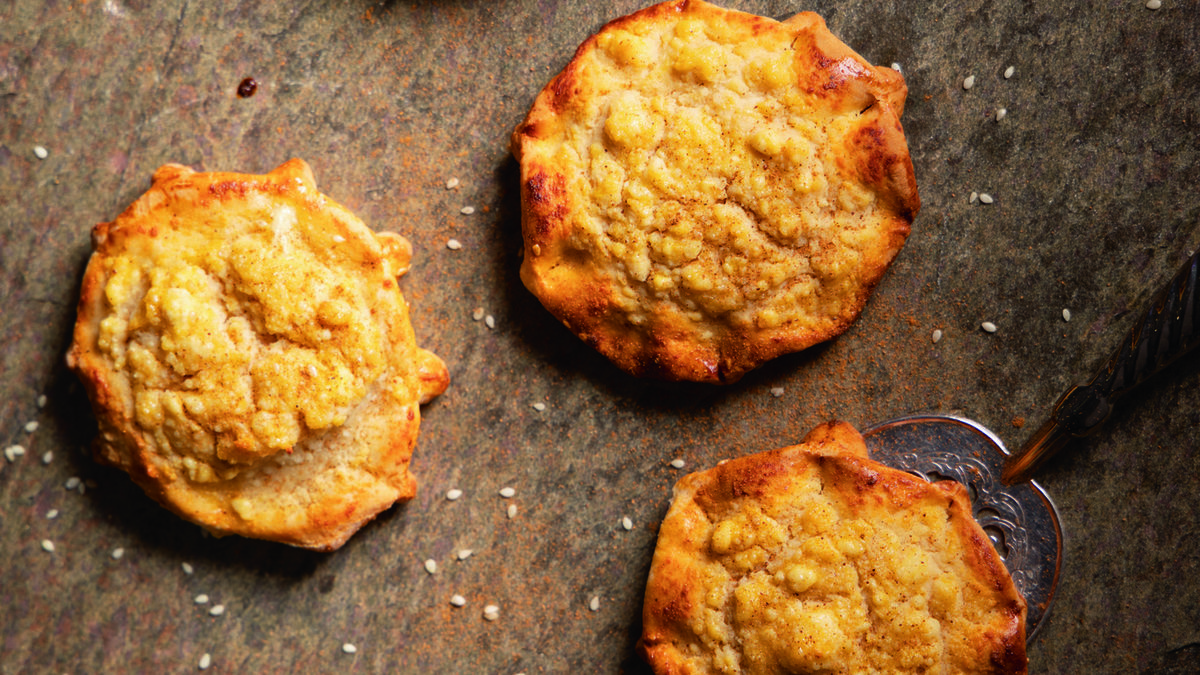 Önceden ısıtılmış 180 derece fırında hamur hafif kızana kadar ve ara sıra kontrol ederek pişirin. Fırından alıp üzerlerine susam ve tarçın serpip servis yapın.