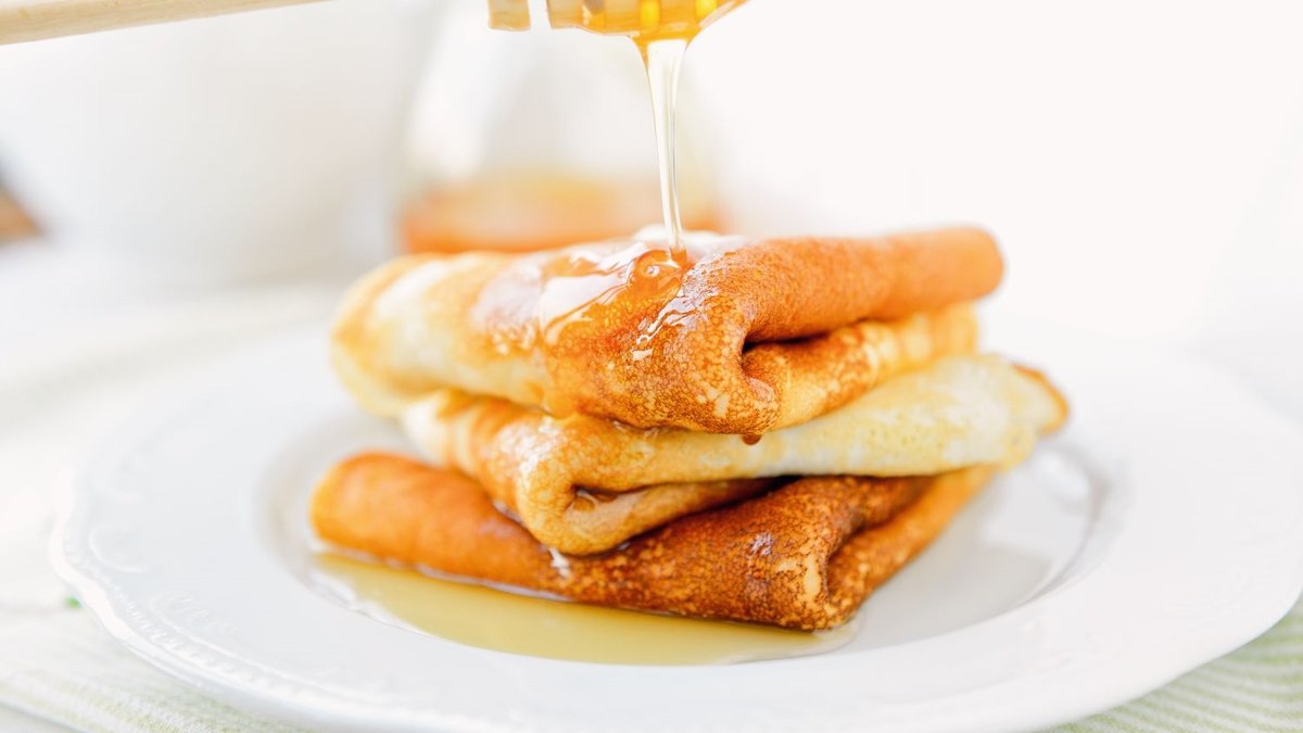 Küçük bir sos tenceresinde, bal ve tereyağını kısık ateşte ısıtın. Tereyağı eriyip bal ısınana kadar karıştırın. Krepleri tabakta üst üste dizin ve üzerlerine ılık bal şerbetini gezdirerek servis yapın.