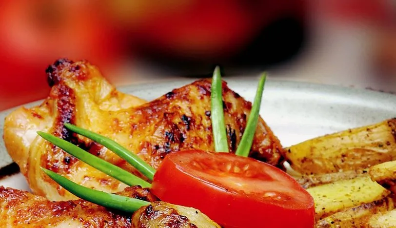 Bir çay bardağı sıvıyağ, yoğurt, 2 çorba kaşığı baharat karışımı ve acı biber salçasını karıştırın. Hazırladığınız sosa tavuk kanatlarını koyup 2-3 saat buzdolabında bekletin. Daha sonra ızgarada arkalı önlü kızartın. Diğertaraftan kalan yağı yapışmaz yüzeyli bir tavaya koyup patatesleri kızartın. Ocaktan almaya yakın 1 çorba kaşığı baharat karışımını üzerine ekleyip karıştırın. Kanatlar piştikten sonra elma dilimi patateslerle birlikte servis yapın.