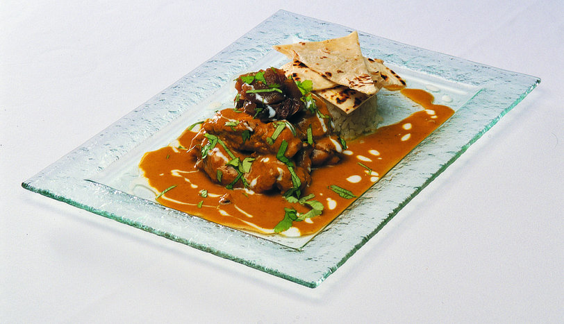 PİRZOLALARI 3 eşit parçaya bölün. Sarmısak ve zencefili küçücük doğrayın. Tavuğu bir gün boyunca taze zencefil ve sarmısak karışımında marine edin. Tavukları tavada iki tarafı da biraz kızarana kadar kızartın. Sonra kenarda beklemeye alın. 1 çorba kaşığı kakule, karanfil ve çubuk tarçını tavada karıştırarak kavurun. Daha sonra karabiber değirmeni ya da blendırdan geçirerek toz haline getirin. Bir tavada biraz yağı ısıtın. Toz kişniş, kimyon ve kırmızıbiberi ekleyin. 5 dakika kadar pişirin. Küp doğranmış soğan ve domatesleri baharatların olduğu tavaya aktarın ve renk alana dek pişirin. Domates salçası ekleyip 5 dakika daha pişirin. 5 su bardağı tavuk suyunu ilave edin ve 5 dakika daha pişirin. Karışımı blendırdan geçirin ve içine 1 su bardağı krema ekleyin. Eğer sos çok koyu ise tavuk suyu ekleyerek açabilirsiniz. Tavukları sosun içine ilave edin ve sos içinde pişirin. Pirinç pilavı ve lavaş ile servis yapın.