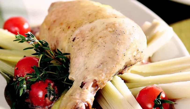 TAVUĞUN kemikli kısmını açın. Ortasına kıydığınız soğanı, kekiği, tereyağını yerleştirip sarın. Tavaya alarak sıvıyağda önlü arkalı kızartın. Sosu hazırlamak için tüm sos malzemesini blenderde püre haline getirin. Pırasayı parmak uzunluğunda keserek tencereye yerleştirin. Üzerini geçecek kadar su ilave ederek, haşlayın. Servis tabağına önce sosu daha sonra pırasayı, son olarak tavuğu yerleştirip servis yapın.
