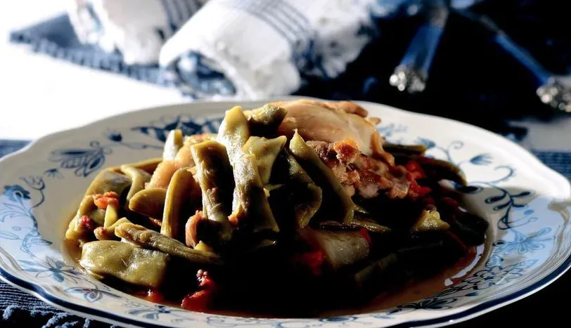 FASULYEYİ yıkayıp uç kısımlarını ve kılçıklarını temizleyin. Dışı sırsız kapaklı bir güveci, tereyağının yarısı ile yağlayıp içine fasulyeyi yerleştirin. Üzerine küp doğranmış domates ve dörde bölünmüş soğanı ekleyin. Güvecin kapağını kapatıp ocakta 20 dakika pişirin. Kalan tereyağını bir tavaya alıp, tavuk butlarını 2-3 dakika kızartın. Butları güvecin tam ortasına yerleştirin. Tavukları kızarttığınız tavaya suyu koyup 1-2 taşım kaynatın ve güvece ekleyin. Tuzunu ayarlayıp, 1 saat 10 dakika daha pişirerek servis yapın.