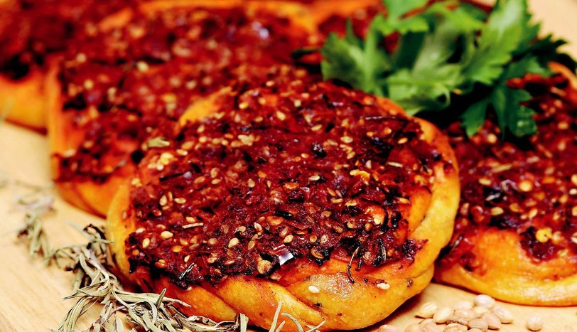 Üzeri için kurutulmuş biberleri sıcak suda kaynatıp suyunu süzün. Biberleri kesme tahtası üzerinde iyice dövün. Derin bir kaba alıp, soğan, zeytinyağı ve maydanoz ekleyin. İyice harmanlayıp hamurların üzerine pay edin ve elinizle hafifçe bastırın. Önceden ısıtılmış 180 derece fırında, pembeleşene dek pişirin. Ilık olarak servis yapın.