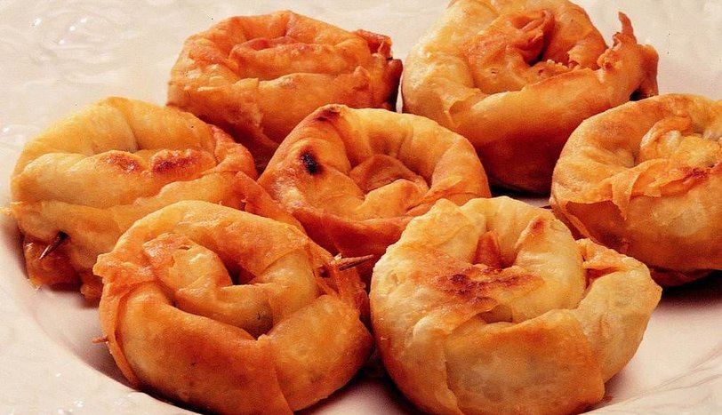 Sonra yufkaları kürdanla tutturun. Börekleri kızgın ayçiçek yağda arkalı önlü kızartıp, kağıt havlu üzerine alın. Sıcak servis yapın.