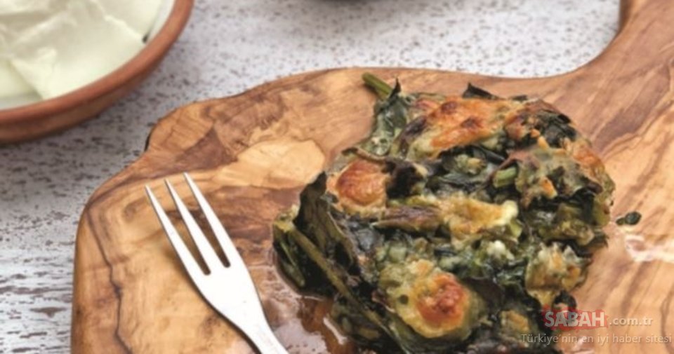 Başka bir yerde un, tuz, zeytinyağının yarısı ve suyla akışkan kıvamda bir hamur hazırlayın. Tereyağı ile iyice yağladığınız büyük boy fırın tepsisine bir kaşık yardımı ile aralıklı olarak hamuru akıtın. Üzerine sebzeli harcı yayarak pay edin. Kalan hamuru harcın üzerini yine tamamen kapatmayacak şekilde aralıklı olarak akıtın.