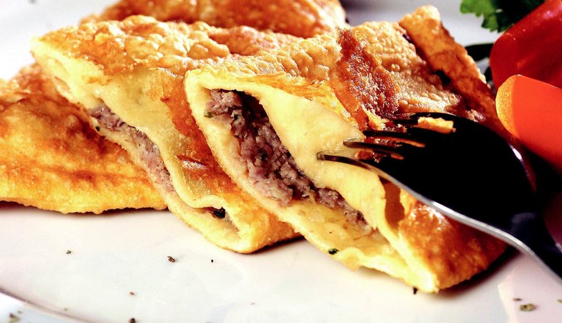 Hazırladığınız hamurdan mandalina büyüklüğünde parçalar koparın. Merdane ile pasta tabağı büyüklüğünde hamurlar açın. Hamurun yarısına hazırladığınız kıymalı harçtan koyun. Diğer yarısını harçlı tarafın üzerine kapatın. Kenarlarını kesme tırtılı ile kesin. Kızdırılmış bol ayçiçek yağında kızartın. Sıcak olarak servis yapın.