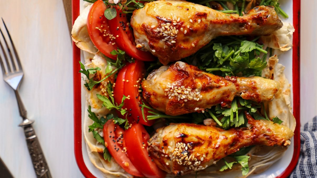 Servis tabağına çıtır yufkaları yayarak zemin oluşturun. Üzerlerine bagetleri yerleştirin. Domates dilimleri ve maydanoz yapraklarıyla süsleyerek servis yapın.
