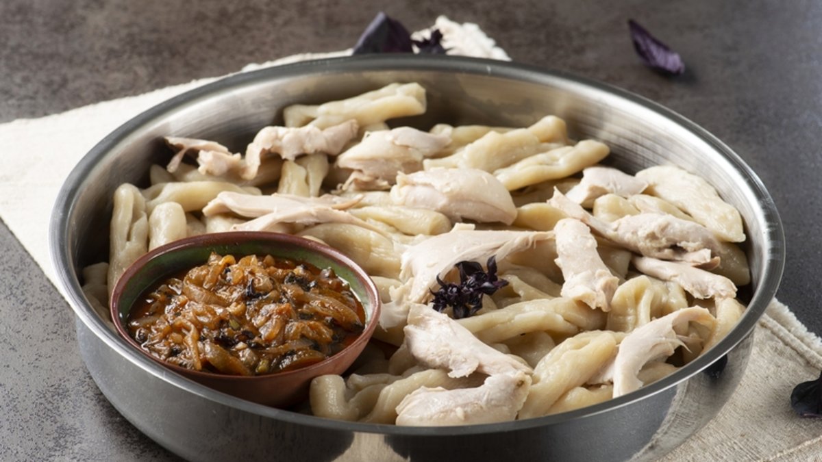 Piştiklerinde suyun yüzeyine çıkacaklardır. Kepçe yardımıyla servis tabağına alın. Üzerlerine tavuk parçalarını koyup, soğanlı sosu gezdirin ve servis yapın.