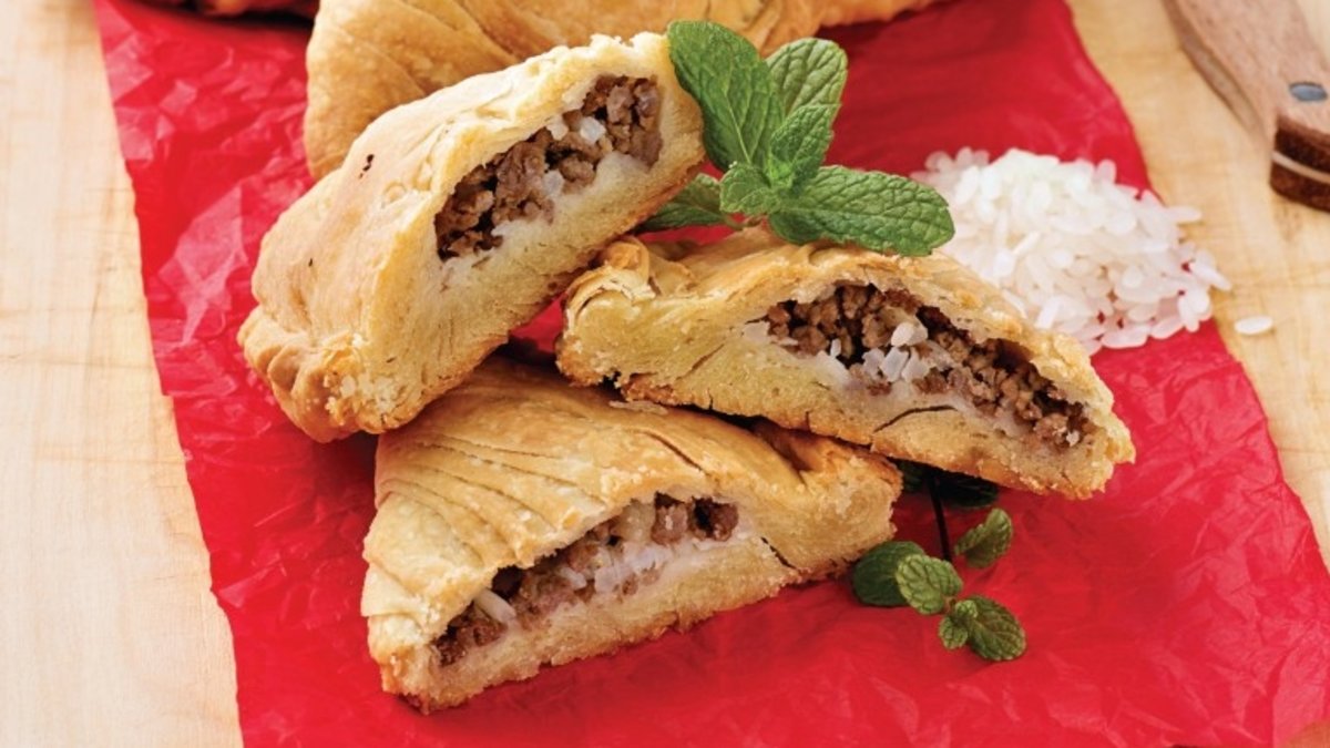 Her bir parçayı elinizle veya merdane yardımıyla çay fincanı tabağı büyüklüğünde açın. Ortalarına iç malzemeyi pay edip, yarım ay şeklinde kapatın. Uçlarını kıvırarak hafif yağlanmış fırın tepsisine yerleştirin. Önceden ısıtılmış 180 derece fırında üzerileri kızarana dek pişirin. Ilık olarak servis yapın.