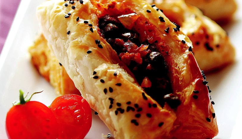 Milföy hamurlarını oda sıcaklığında 15 dakika bekletip yumuşamalarını sağlayın. Diğer taraftan kıymayı bir tavaya alıp suyunu salıp çekene dek kavurun.