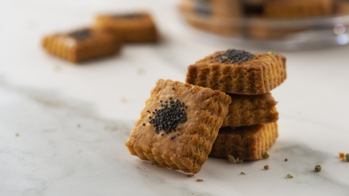 Pişirme kağıdı ile kaplanmış fırın tepsisine yerleştirip, üzerlerine yumurta sarısı sürün. Haşhaş ve kekik serpip, önceden ısıtılmış 180 derece fırında yaklaşık 20 dakika kızarana kadar pişirin.