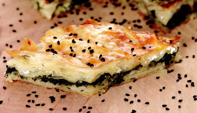 Tepsinin kenarlarından sarkan kısımları yufkaların üzerine kapatın. Kalan 1 adet yumurtayı 1 yemek kaşığı yoğurtla çırparak yufkaların üzerine sürün. Susam ve çörek otu serptikten sonra önceden ısıtılmış 175 derece fırında 35-40 dakika pişirin. Fırından çıkardıktan sonra üzerine sütü boşaltın. Böreği dilimleyip, sıcak olarak servis yapın.