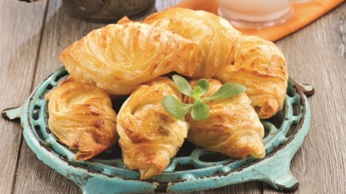 Kalan yufkaları da aynı şekilde hazırlayıp, üzerlerine yumurta sarısı sürün ve önceden ısıtılmış 170 derece fırında kızarana dek pişirin. Ilık olarak servis yapın.