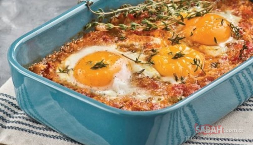 Üzerine yumurtaları kırıp, önceden ısıtılmış 200 derece fırında, yumurta akları pişene kadar 4-5 dakika pişirin.