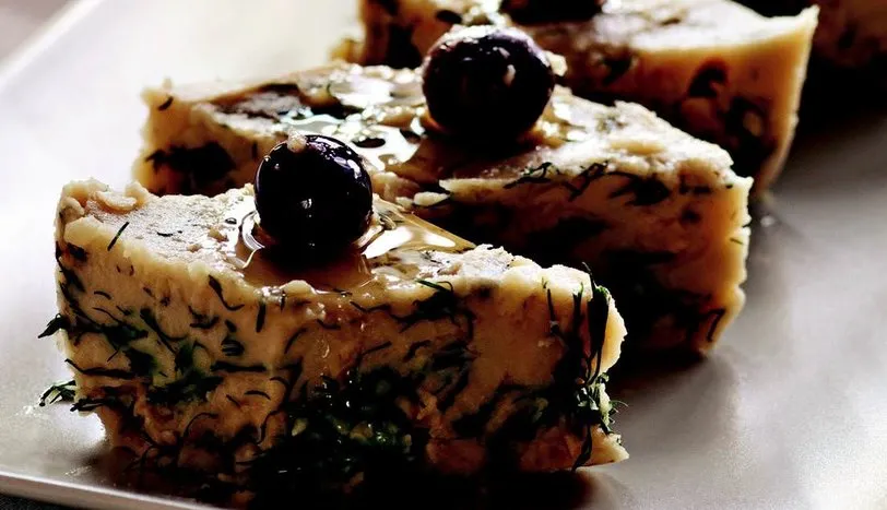 Bakla, soğan, sarımsak, zeytinyağı ve kesme şekeri derin bir tencereye alın. Bakla yumuşayana dek pişirin. Ocaktan almaya yakın tuz ekleyin. Blenderden geçirip, kıyılmış dereotu ilave edin. Başka bir kaba alıp soğumaya bırakın. Soğuyunca dilimleyip servis yapın.