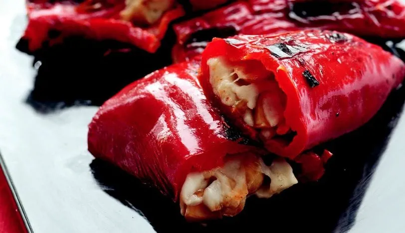 Biberlerin üst kısımlarını kapak şeklinde kesip, çekirdeklerini çıkarın. Peyniri elinizle didikleyin. Yer fıstığının kabuklarını soyup, dövün ve peynirle karıştırın. Daha sonra biberlerin içine paylaştırın. Kapak olarak kestiğiniz parçaları üzerlerine koyun. Mangalda önlü arkalı pişirin.