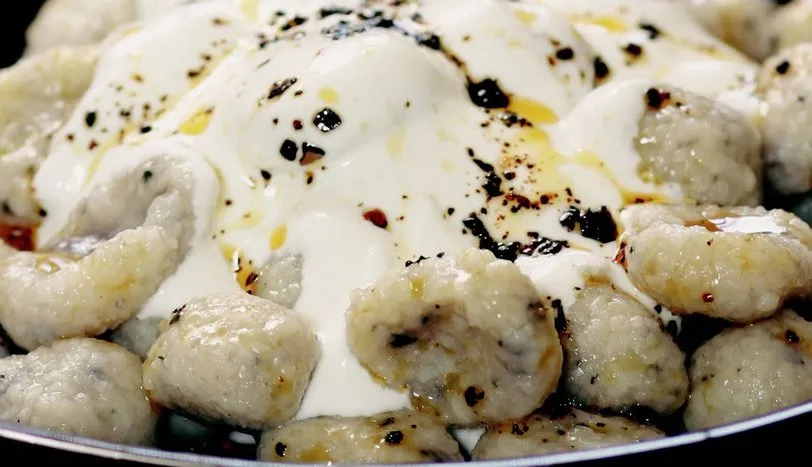 Bulgurun üzerini hafifçe geçecek kadar sıcak su ekleyip 15 dakika demlendirin. Daha sonra diğer malzemeleri de üzerine ilave ederek yoğurun. Bu hamurdan minik top köfteler hazırlayın. Kemik suyunu kaynatıp köfteleri 10 dakika haşlayın ve kevgirle servis tabağına alın. Üzerine sarımsaklı yoğurt döküp, kızdırılmış tereyağı-pul biber gezdirin.