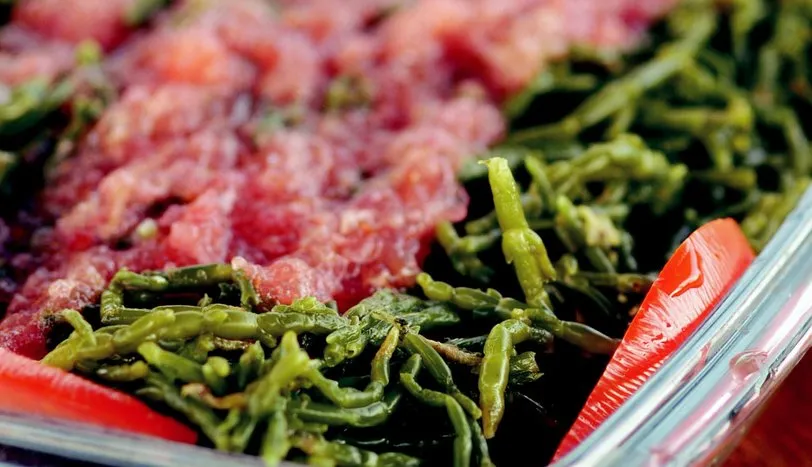Deniz börülcesini soğuk suda iyice yıkayıp, yarım saat haşlayın (iyice temizlenmesi için bir gece önceden de suya yatırabilirsiniz). Sudan alıp temizleyin. Dışının yumuşak zarını çıkarın. Zeytinyağı, limon suyu ve kıyılmış sarımsağı karıştırıp, börülceye ekleyin. En üste 3 adet domatesi rendeleyip servis yapın.