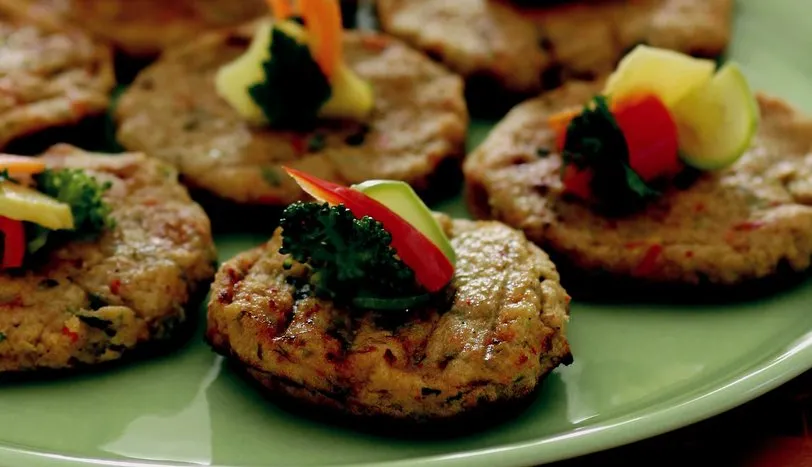 Patatesleri haşlayıp derin bir kaba alın ve ezin. Soğan, kırmızı biber, havuç, dolmalık biber, kabak, maydanoz ve fesleğeni birlikte blenderden geçirip patateslere ekleyin. Galeta unu, yumurta, peynir, süt ve baharatları harca ilave edip yoğurun. Harçtan yumurta büyüklüğünde parçalar kopartıp bir parmak kalınlığında yuvarlak ve yassı köfteler yapın. Üstlerine fırça ile sıvı yağ sürüp, fırının ızgara bölümünde arkalı önlü pişirin. Süsleme malzemelerinden kabak ve havucu halka doğrayın. Biberleri ikiye bölün. Hepsini birlikte 10 dakika ağır ateşte haşlayın. Sebzelerle süsleyip, servis yapın.