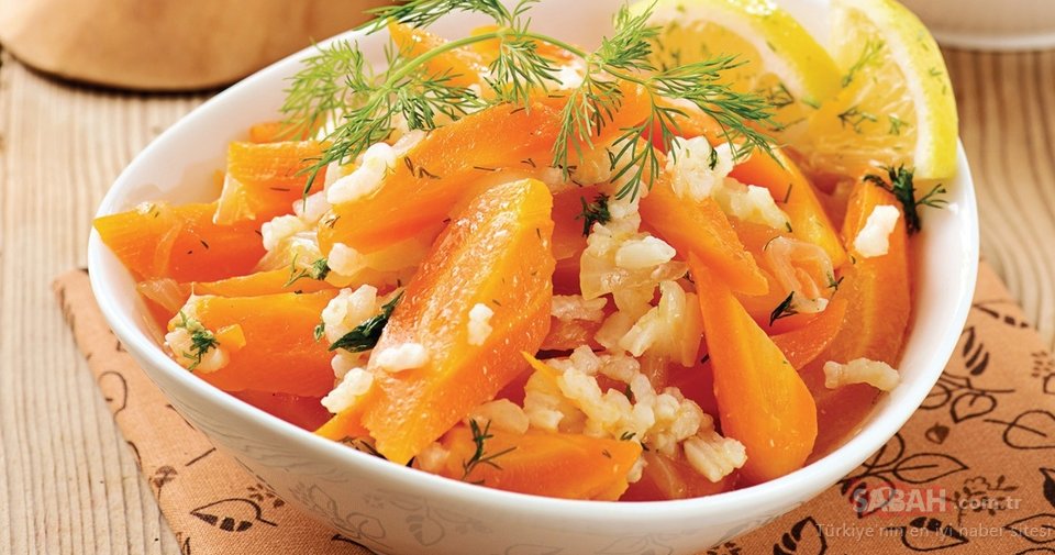Üzerine havucu ekeyin ve 2-3 dakika birlikte kavurun. Pirinç, şeker ve tuzu da ilave edin. Birkaç dakika daha kavurup suyu katın. Kapağı kapalı olarak, kısık ateşte havuç yumuşayana dek pişirin.