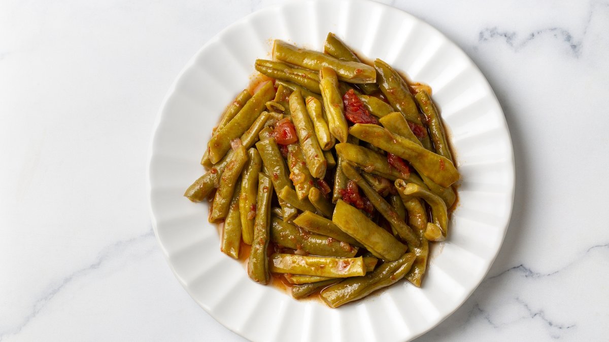 Tencerenin kapağını kapatın ve fasulyeler yumuşayana kadar kısık ateşte pişirin. Ara ara kontrol edip, gerekiyorsa su ekleyin. Yemeğinizi ocaktan alın ve soğumaya bırakın. Üzerine kalan zeytinyağını gezdirin. Oda sıcaklığında soğutarak servis yapın.
