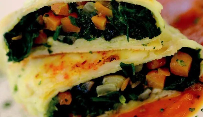 ÖNCELİKLE krep hamurunu hazırlayın. Bunun için, süt, yağ, un, yumurta ve tuzu derin bir kaba alıp, hep beraber iyice çırpın. Elde ettiğiniz karışımı, yapışmaz yüzeyli tavaya, kepçe ile, olabilecek en ince şekilde dökün. Bir tarafı kızardığında diğer tarafını çevirin ve daha sonra ocaktan alın. Krep hamuru bitene kadar bu işlemi tekrarlayın. Beşamel sos için, tereyağını ocağa koyun. Eriyip kızarmaya başlayınca un ekleyip, yavaş ateşte sürekli karıştırarak kavurun. Daha sonra ocaktan alıp süt ekleyin ve hızlıca çırpma teli ile karıştırın. Ocağa tekrar koyun ve yavaşça kaynayıp, muhallebi kıvamı almasını sağlayın. Pişen sosa muskat ve tuz katıp, ocaktan kaldırın. İç malzemesi için, havuç, kabak ve soğanı küçük küpler halinde doğrayın. Tencereye yağ koyup, sırasıyla soğan, havuç ve kabağı soteleyerek pişirin. Ispanağı ince kıyıp, sebzelere ekleyin. Tuz ve isteğe göre karabiber ekleyip soğumaya bırakın. Krepleri düz bir zeminde açın. Sebzeli malzemeye 1 çorba kaşığı beşamel sos ve rendelenmiş kaşar peyniri ilave edin. Kreplerin ortasına koyup, yanlarını kapatarak sarın. Yağlanmış fırın tepsisine alın. Üzerlerine kalan beşamel sosu yayın. Onun da üzerine, kalan kaşar peynirini serpip, 180 derece fırında 15 dakika pişirin. Dilerseniz domatesli sos ile sıcak servis yapın.