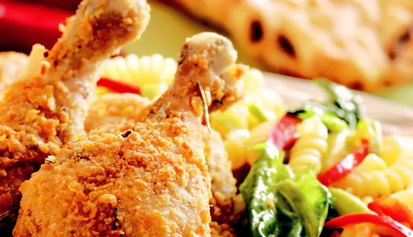 butlarını en az 1 saat bu sosta bekletin. Daha sonra bir kasede 2 adet yumurtayı çırpın. Tavuk butlarını sostan çıkarıp, önce yumurtaya, ardından pane harcına bulayarak kızgın sıvıyağda kızartın. Kağıt havlu üzerine çıkardığınız butları sebzeli makarna ile servis yapın. Sebzeli makarna için: Makarnayı tuzlu suda haşlayıp süzün. Yapışmaz yüzeyli tavada 2 çorba kaşığı sıvıyağda jülyen doğranmış kabağı ve biberi soteleyin. Tuz, karabiber ekleyin. Yıkanıp, irice doğranmış ıspanak yapraklarını ilave edip, karıştırın.Makarnayı da ekleyip, hepsini harmanlayın.